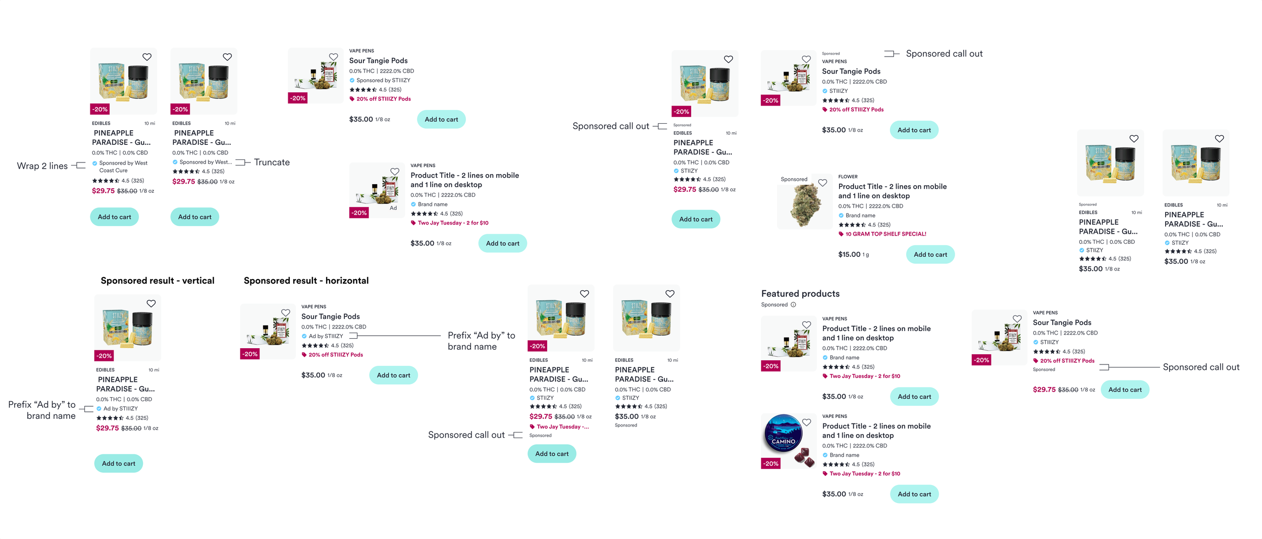 As part of the Monetization and Ad Tech team at Weedmaps, I led the design of a new revenue strategy focused on enhancing category landing pages through integrated advertising. This included the design and testing of sponsored product placements and premium display formats bridging marketplace UX with monetization goals.